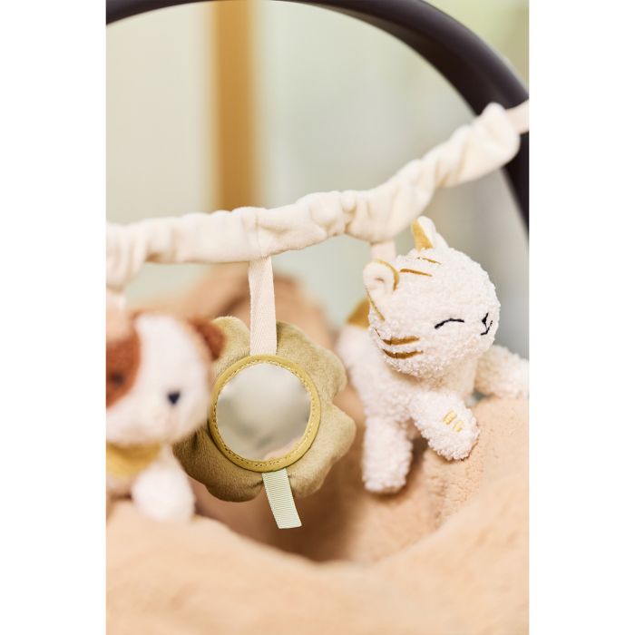 Deze leuke wagenspanner is eenvoudig te bevestigen aan de maxi-cosi en zorgt onderweg voor veel speelplezier en vermaak dankzij de speeltjes met een rammelaar, spiegeltje, knijptoetertje en knisper.