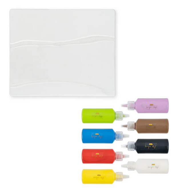 Deze creatieve set bevat acht verschillende raamverven in verschillende kleuren met glitters en acht stukken tekenpapier, zodat je je kunstwerk precies goed kunt maken.